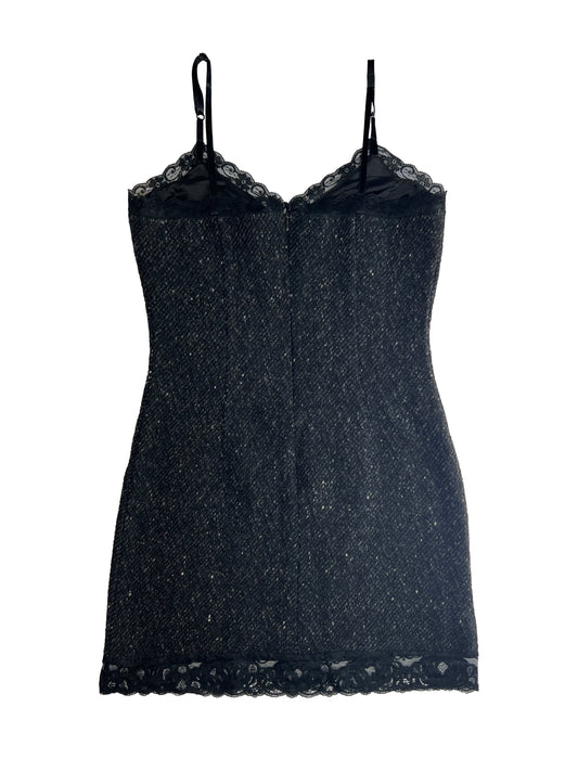 1990's D&G Dolce & Gabbana Wool Logo Dress with Lace Trim